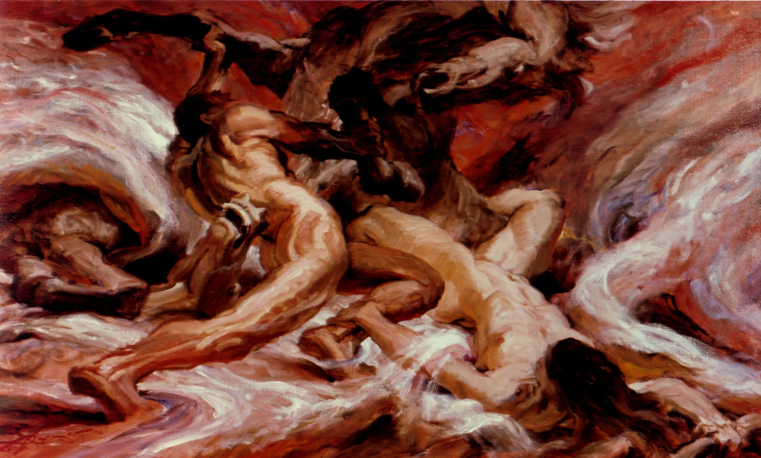 The one-man show titled, “Spirit of Man and Horse” showcased his “heroic interpretations of man, woman and beast”. This painting “Deluge” (below) and other works from the exhibition can viewed in SOLO SHOWS - Jacques Seligmann Gallery - "The Spirit of Man & Horse".